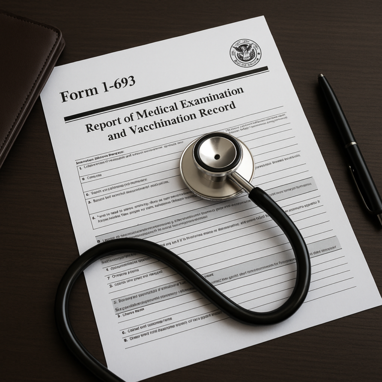 If you are applying for lawful permanent residency (“Green Card”) from within the United States, you have to submit Form I-693, which is a medical exam and vaccination record completed by a specific doctor. Submitting this form shows that you are eligible for a Green Card based on health reasons.