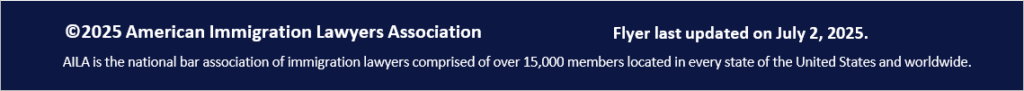 This flyer is intended for general information purposes only and does not constitute legal advice. You should not act or rely on any information in this flyer without seeking the advice of a competent, licensed immigration attorney.