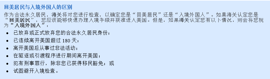 - 如果海关扣留您的绿卡,您可以要求在护照上盖章以证明您的身份。如果他们拒绝,您可以预约美国公民及移民服务局(USCIS,以下简称“移民局”)面谈,申请在护照上加盖 I-551 章以证明您的身份。